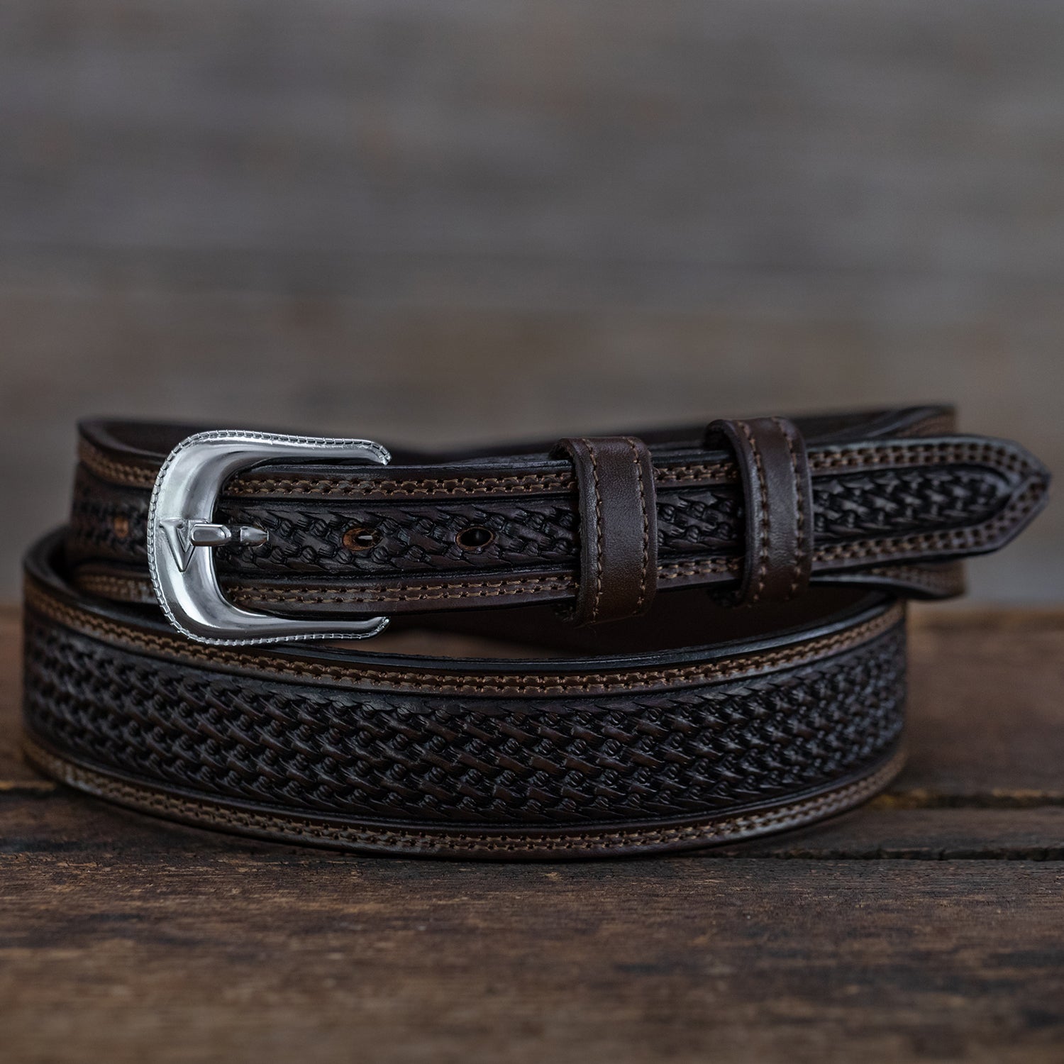 Vogt Silversmiths Belts Chocolate Basket Weave Pattern 1/2" Straight