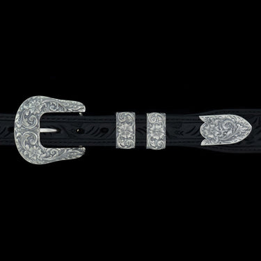 Blaze new trails with the Trailblazer Buckle Set! This handcrafted 4-piece design, featuring sterling silver scrollwork and an antique finish, is a true standout.