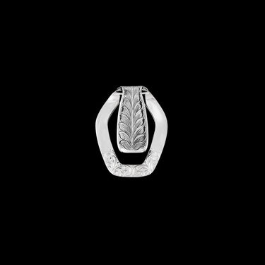The Laramie Money Clip features a sterling silver open front fully engraved with a brite cut pattern and a polished back with an elegant antiqued leaf pattern.