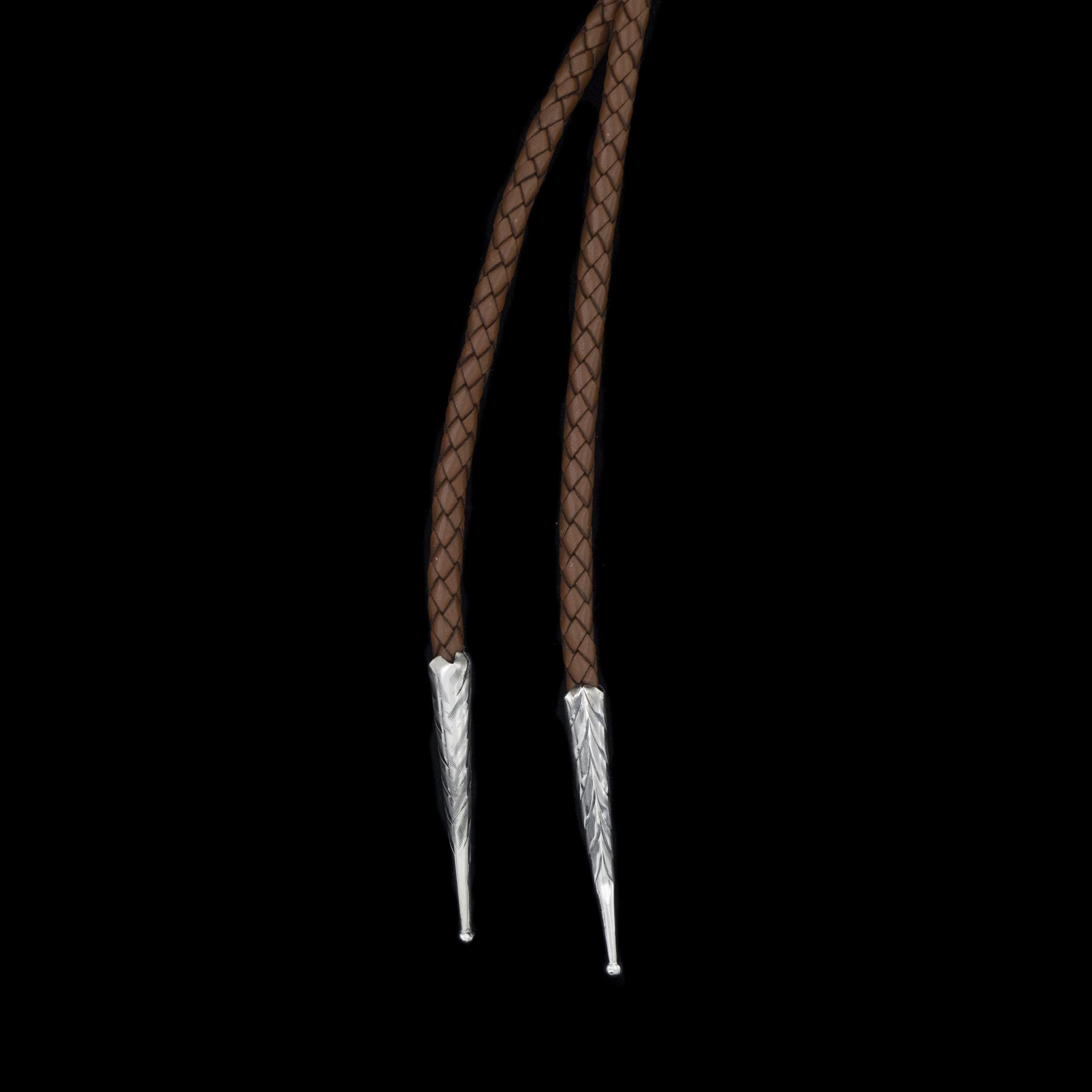 From the Cheyenne Series, this sterling silver bolo features a bold Longhorn centerpiece, symbolizing strength and the enduring spirit of the West. Framed by intricate hand-engraved scrollwork on all three sides, every detail reflects the artistry of true Western craftsmanship. Finished with engraved sterling silver tips, this bolo is a striking statement of tradition, built to stand the test of time.