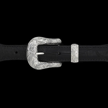 This 2-piece buckle set is handcrafted in solid sterling silver, featuring a flared buckle shape and domed keeper—fully hand-engraved with no added accents for a clean, traditional Western look.