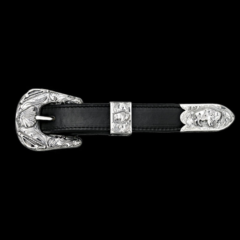 One of our most iconic designs, The Yellowstone is crafted in solid sterling silver and features a buffalo on the tip and keeper, with the buckle depicting a Native American figure balanced on each side by a bow.
