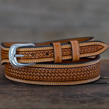 The Vogt Silversmiths selection of belts are fully hand tooled and made of American saddle leather. Our belts are lined in top grain leather for extra durability and are accented with fine stitching and hand rubbed edges.