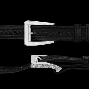 This new sharp-looking buckle is inspired by our best-selling L.O.D.O buckle. Made of sterling silver, it is smooth on top and has intricately hand-engraved scrolls on the sides.